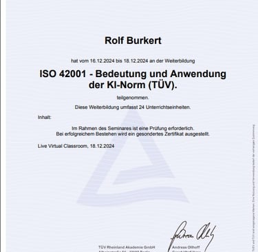 Mein Fokus: KI-Governance nach EU-AI-Act und ISO/IEC 42001, die nicht nur compliant, sondern auch wirtschaftlich wertvoll ist."