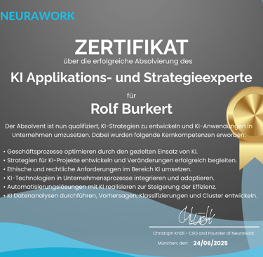 Als strategischer Begleiter unterstütze ich nicht nur bei der Implementierung, sondern etabliere eine lebendige KI-Kultur, die Innovationen ermöglicht und Wettbewerbsvorteile sichert."