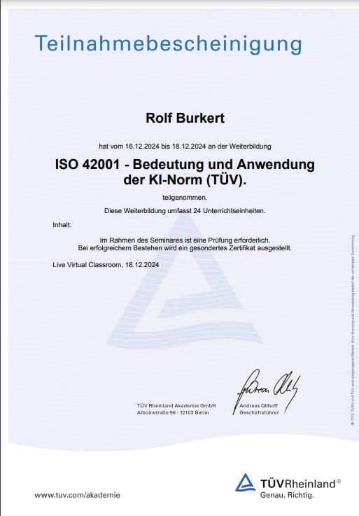 Mein Fokus: KI-Governance nach EU-AI-Act und ISO/IEC 42001, die nicht nur compliant, sondern auch wirtschaftlich wertvoll ist."